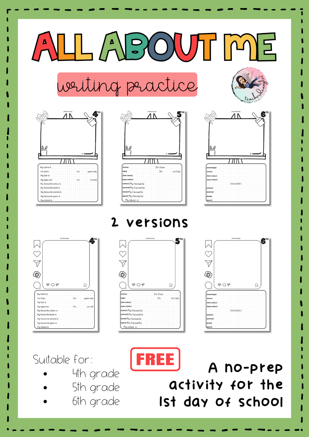 This traditional activity for the first days of school is perfect to check/practice students' writing. It is also no-prep! just print and go!